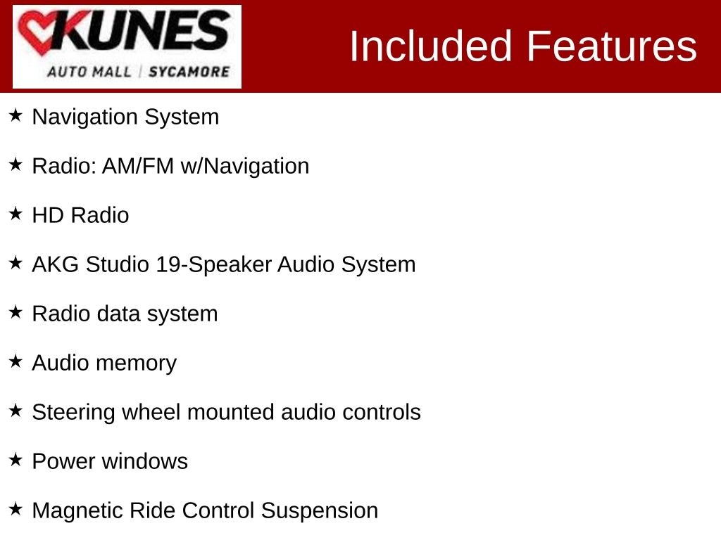 *While we make every effort to ensure the data listed here is correct, there may be instances where some of the factory rebates, incentives, options or vehicle features may be listed incorrectly as we get data from multiple data sources. PLEASE MAKE SURE to confirm the details of this vehicle with the dealer to ensure its accuracy. Dealer cannot be held liable for data that is listed incorrectly. * MSRP is the Manufacturer's Suggested Retail Price (MSRP) of the vehicle. Prices shown do not include taxes, license and title fees. Consumers, please be aware that the above advertised price assumes you are purchasing the vehicle from the Kunes Auto Group dealership where it is listed as being offered for sale. If the vehicle is transferred from one location to another, a transfer fee for this transportation of $300 will be added to the purchase transaction. If you would like to purchase such vehicle without paying a transfer fee, you can take delivery of the vehicle at the store it is listed as being sold from and avoid the additional transfer fee. Shipping fees vary depending on location, contact dealer for shipping details and costs. Dealer includes all guaranteed factory incentives in the final price of new vehicles. *Policy on Hand Control Driving Devices: To accommodate our customers, we will install portable hand control units that the customer provides to us in order to test drive a vehicle so long as the device can be installed and removed without physical modification or alteration to the vehicle. If the customer does not have a portable vehicle hand control unit, we will provide one. For the safety of our customers and employees, these hand control units are installed at our service department. Appointments for a vehicle test drive using a hand control device are strongly recommended for daytime hours to ensure that a licensed technician is available to install the hand control system and test the safety of the unit before the customer test drives the vehicle. If you have any questions regarding this policy, please contact the General Manager of the dealership.