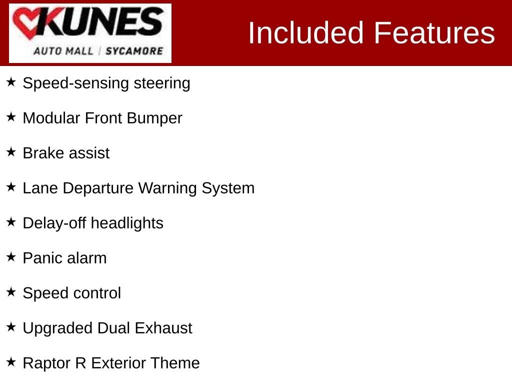 KUNES AUTO MALL OF SYCAMORE - Kunes Auto Group is dedicated to building people's lives in the communities we serve. We're family-owned and operated. Gregg Kunes started with Kunes Ford Lincoln in Delavan, Wisconsin in 1996, and over the years we have grown to 40 automobile and RV dealerships throughout the Midwest. Our mission is to not only deliver exceptional customer service, but to serve our communities well in the form of projects, promotions, support, donations, and whatever else is needed. Find out why our dealerships have won DealerRater.com DEALER OF THE YEAR a whopping 10 TIMES! Call, email, or live chat with one of our friendly sales professionals now to schedule your test drive! Price excludes taxes, license and title fees and a $377.63 documentary service fee. While we make every effort to ensure the data listed here is correct, there may be instances where some of the options or vehicle features may be listed incorrectly as we get data from multiple data sources. PLEASE MAKE SURE to confirm the details of this vehicle with the dealer to ensure its accuracy. Dealer cannot be held liable for data that is listed incorrectly. Prices shown do not include taxes, license, and title fees and a $377.63 documentary service fee.