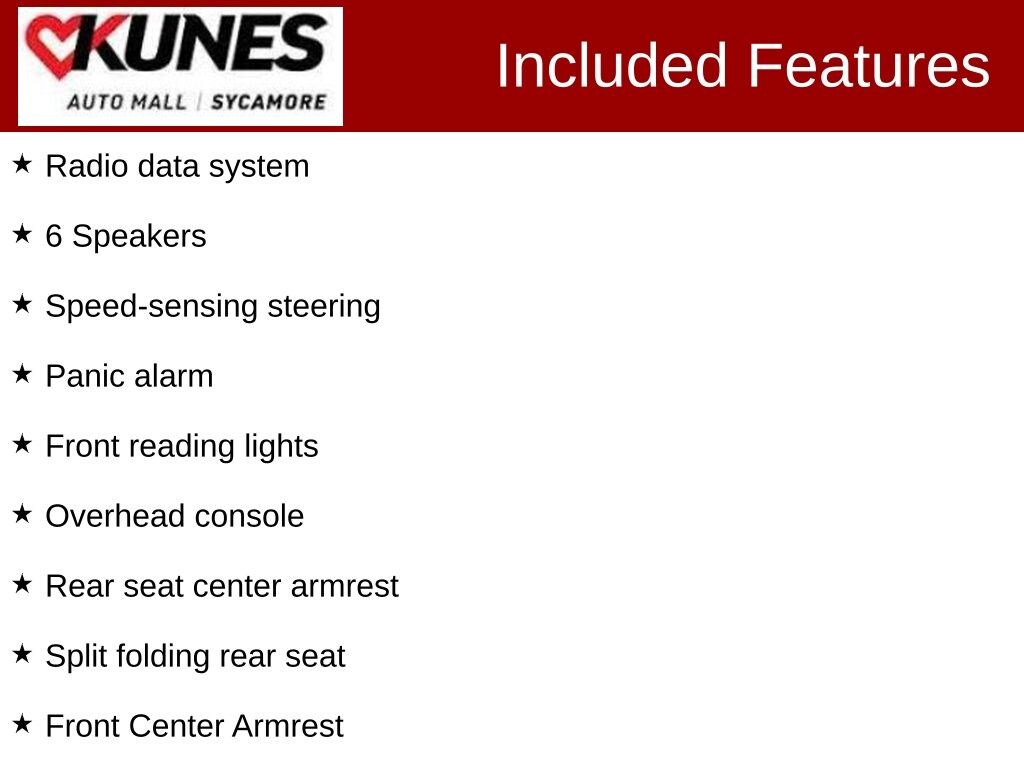 *While we make every effort to ensure the data listed here is correct, there may be instances where some of the factory rebates, incentives, options or vehicle features may be listed incorrectly as we get data from multiple data sources. PLEASE MAKE SURE to confirm the details of this vehicle with the dealer to ensure its accuracy. Dealer cannot be held liable for data that is listed incorrectly. * MSRP is the Manufacturer's Suggested Retail Price (MSRP) of the vehicle. Prices shown do not include taxes, license and title fees and a documentary service fee ($377.63 for Illinois) and tax, title, registration and service fees ($599 for Wisconsin). Consult the dealer for fees, payments and complete details. Consumers, please be aware that the above advertised price assumes you are purchasing the vehicle from the Kunes Auto Group dealership where it is listed as being offered for sale. If the vehicle is transferred from one location to another, a transfer fee for this transportation of $300 will be added to the purchase transaction. If you would like to purchase such vehicle without paying a transfer fee, you can take delivery of the vehicle at the store it is listed as being sold from and avoid the additional transfer fee. Shipping fees vary depending on location, contact dealer for shipping details and costs. Dealer includes all guaranteed factory incentives in the final price of new vehicles. *Policy on Hand Control Driving Devices: To accommodate our customers, we will install portable hand control units that the customer provides to us in order to test drive a vehicle so long as the device can be installed and removed without physical modification or alteration to the vehicle. If the customer does not have a portable vehicle hand control unit, we will provide one. For the safety of our customers and employees, these hand control units are installed at our service department. Appointments for a vehicle test drive using a hand control device are strongly recommended for daytime hours to ensure that a licensed technician is available to install the hand control system and test the safety of the unit before the customer test drives the vehicle. If you have any questions regarding this policy, please contact the General Manager of the dealership.