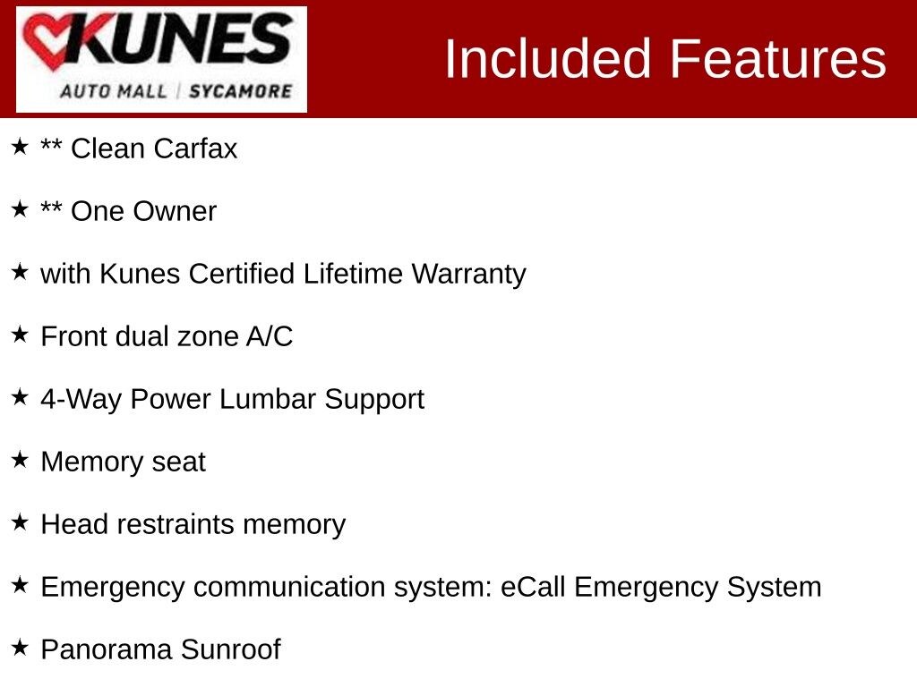 KUNES AUTO MALL OF SYCAMORE - Kunes Auto Group is dedicated to building peopleâs lives in the communities we serve. Weâre family-owned and operated. Gregg Kunes started with Kunes Ford Lincoln in Delavan, Wisconsin in 1996, and over the years we have grown to 40 automobile and RV dealerships throughout the Midwest. Our mission is to not only deliver exceptional customer service, but to serve our communities well in the form of projects, promotions, support, donations, and whatever else is needed. Find out why our dealerships have won DealerRater.com DEALER OF THE YEAR a whopping 10 TIMES! Call, email, or live chat with one of our friendly sales professionals now to schedule your test drive! Price excludes taxes, license and title fees and a documentary service fee. While we make every effort to ensure the data listed here is correct, there may be instances where some of the options or vehicle features may be listed incorrectly as we get data from multiple data sources. PLEASE MAKE SURE to confirm the details of this vehicle with the dealer to ensure its accuracy. Dealer cannot be held liable for data that is listed incorrectly. Prices shown do not include taxes, license, and title fees and a $367.70 documentary service fee.