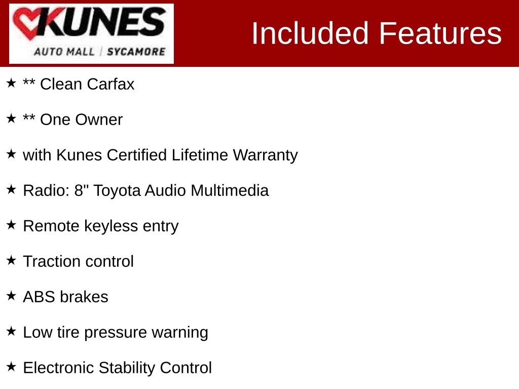 Recent Arrival! 2024 Toyota Corolla LE ** Clean Carfax, ** One Owner, with Kunes Certified Lifetime Warranty, ABS brakes, Electronic Stability Control, Exterior Parking Camera Rear, Illuminated entry, Low tire pressure warning, Radio: 8" Toyota Audio Multimedia, Remote keyless entry, Traction control. CARFAX One-Owner. Clean CARFAX.