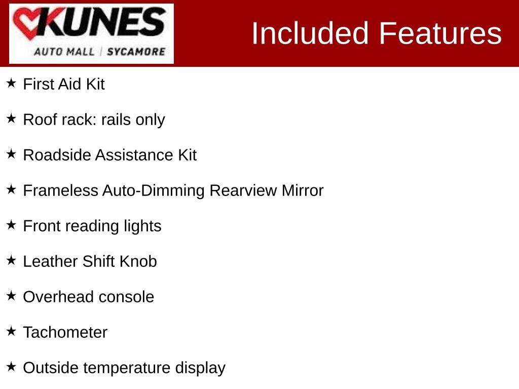 *While we make every effort to ensure the data listed here is correct, there may be instances where some of the factory rebates, incentives, options or vehicle features may be listed incorrectly as we get data from multiple data sources. PLEASE MAKE SURE to confirm the details of this vehicle with the dealer to ensure its accuracy. Dealer cannot be held liable for data that is listed incorrectly. * MSRP is the Manufacturer's Suggested Retail Price (MSRP) of the vehicle. Prices shown do not include taxes, license and title fees and a documentary service fee ($377.63 for Illinois) and tax, title, registration and service fees ($599 for Wisconsin). Consult the dealer for fees, payments and complete details. Consumers, please be aware that the above advertised price assumes you are purchasing the vehicle from the Kunes Auto Group dealership where it is listed as being offered for sale. If the vehicle is transferred from one location to another, a transfer fee for this transportation of $300 will be added to the purchase transaction. If you would like to purchase such vehicle without paying a transfer fee, you can take delivery of the vehicle at the store it is listed as being sold from and avoid the additional transfer fee. Shipping fees vary depending on location, contact dealer for shipping details and costs. Dealer includes all guaranteed factory incentives in the final price of new vehicles. *Policy on Hand Control Driving Devices: To accommodate our customers, we will install portable hand control units that the customer provides to us in order to test drive a vehicle so long as the device can be installed and removed without physical modification or alteration to the vehicle. If the customer does not have a portable vehicle hand control unit, we will provide one. For the safety of our customers and employees, these hand control units are installed at our service department. Appointments for a vehicle test drive using a hand control device are strongly recommended for daytime hours to ensure that a licensed technician is available to install the hand control system and test the safety of the unit before the customer test drives the vehicle. If you have any questions regarding this policy, please contact the General Manager of the dealership.